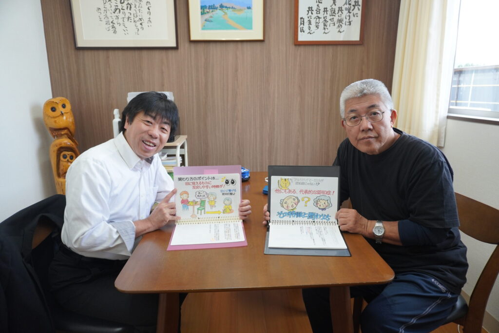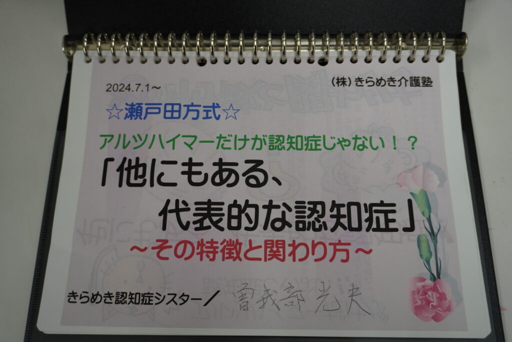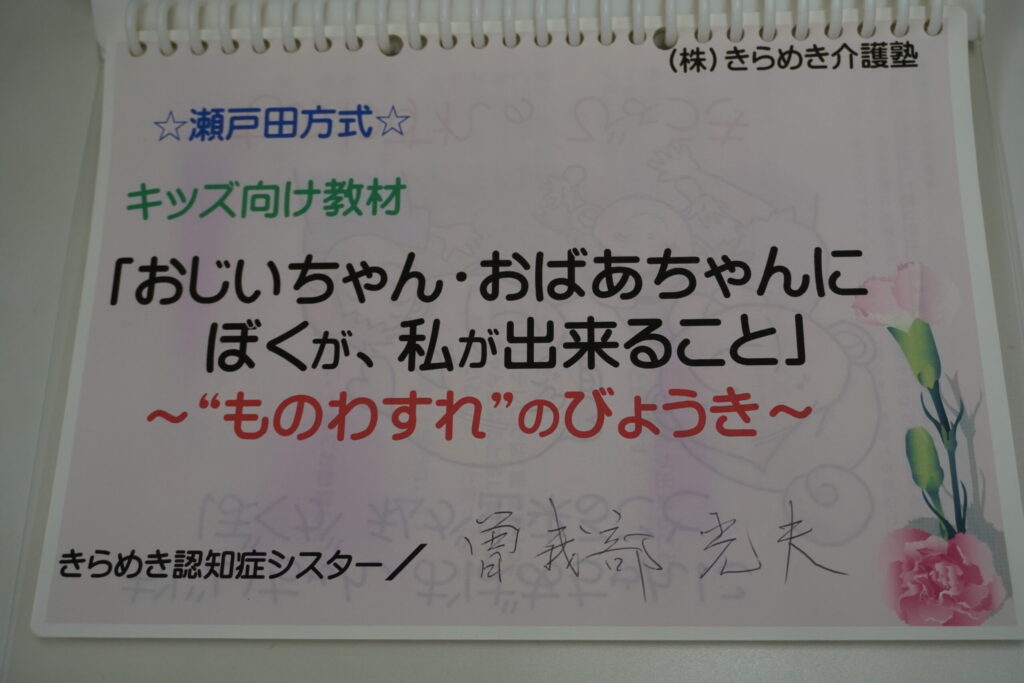 本日、「認知症シスター養成講座」を私(代表)が受講するために、滋賀県から「渡辺哲弘さん」に「デイサービスこもれび」へ来ていただきました。渡辺哲弘さんは、「職場や地域で認知症をわかりやすく伝えられる人材の育成」を目的に2013年設立されました。伝える手段としては、「紙芝居」を使います。今回、「4大認知症編」が新しく作られたので、さっそく受講しました。(愛媛県西条市小松町大頭、デイサービスこもれび)