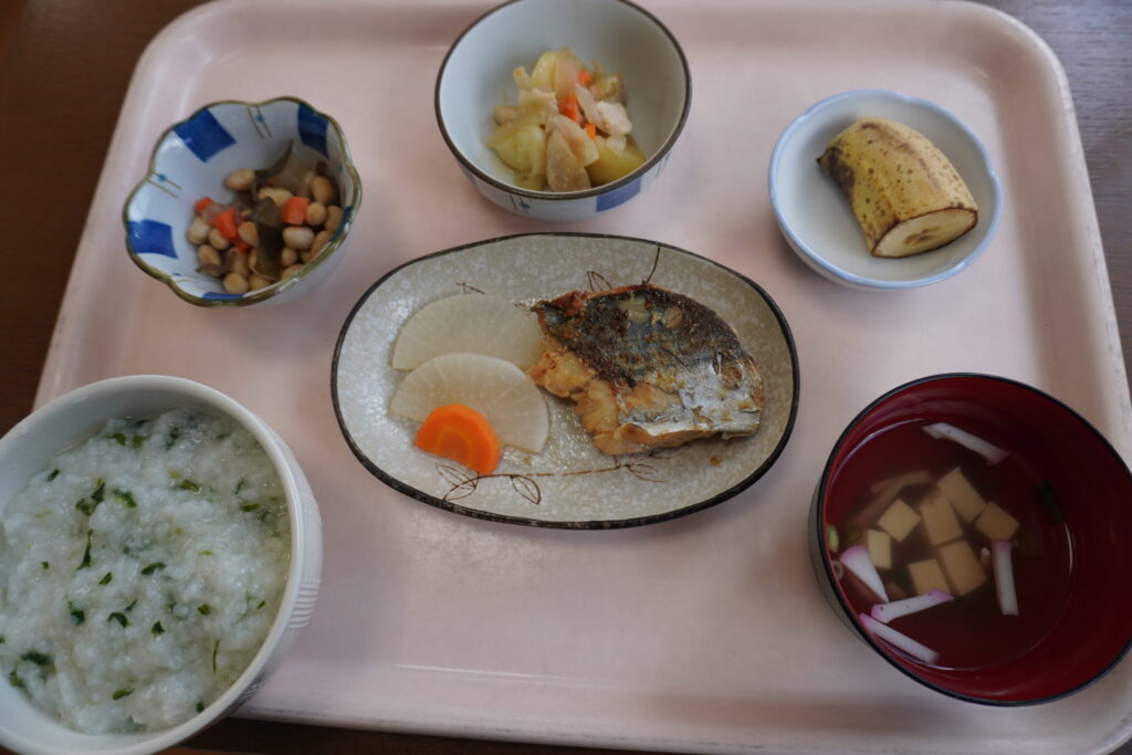 本日は「人日の節句」、「七草がゆ」を食べる!! 2026年1月8日 最終更新日時 : 2026年1月8日 曽我部光夫 本日は、「人日の節句」で「七草がゆ」を食べると、一年間「無病息災」で過ごせると言われています。「デイサービスこもれび」の昼食に「七草がゆ」がでました。(愛媛県西条市小松町大頭、デイサービスこもれび)
