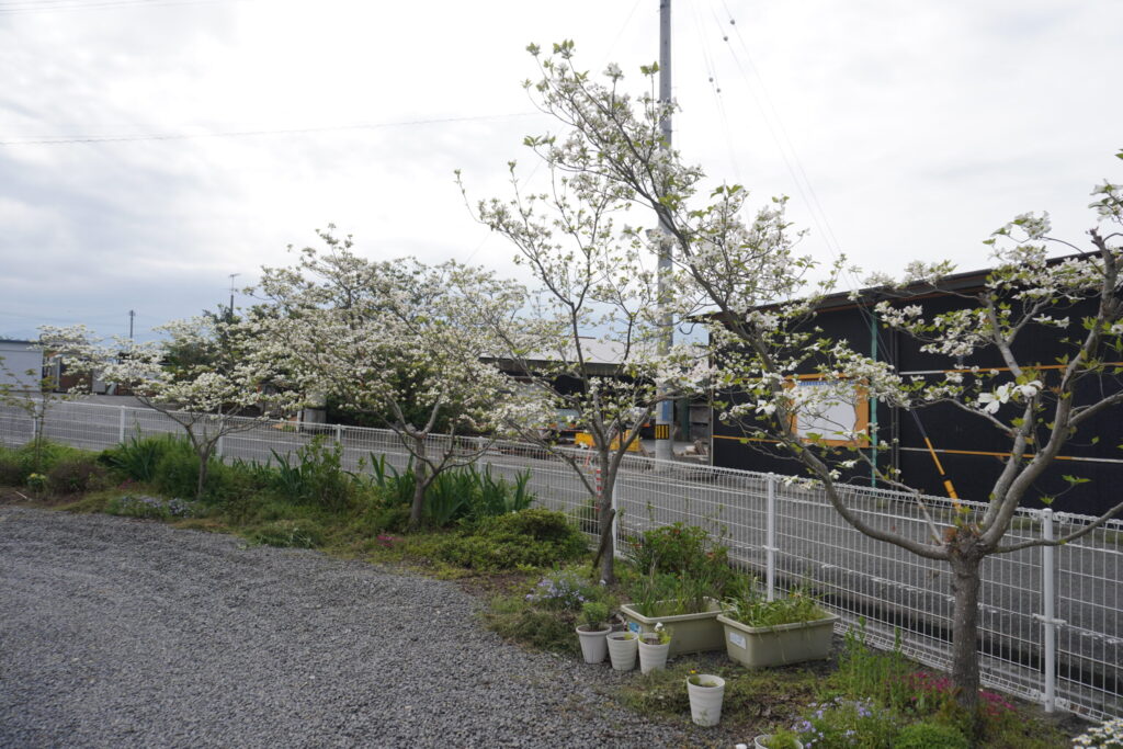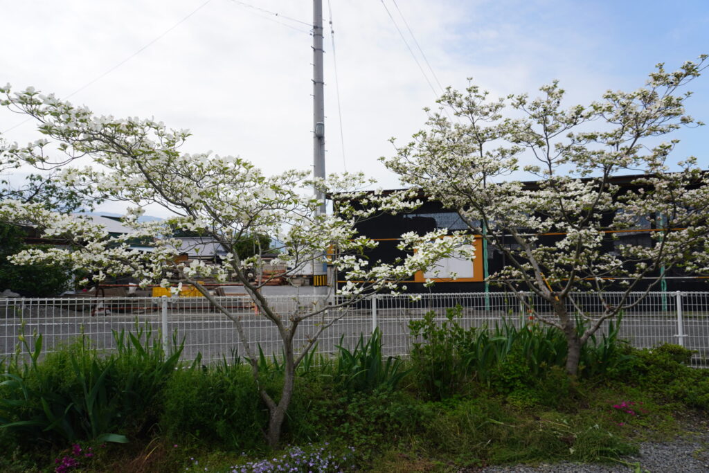 清楚な白い花が心を洗ってくれます! 2026年4月19日 最終更新日時 : 2026年4月19日 曽我部光夫 「デイサービスこもれび」のフェンス際に咲いている「ハナミズキ」が咲いています。ハナミズキの木がフェンスに沿って1列に並んでいます。清楚な白い花を咲かせています。(愛媛県西条市小松町大頭、デイサービスこもれび)