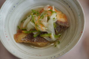 「デイサービスこもれび」の本日の昼食です。メインメニューは「鯛の南蛮漬け」です。「魚」は、できるだけ魚屋さんで購入した無塩の「魚」を使うようにしています。「魚」も「鯛」の使用頻度を増やしています。「鯛」は、味に癖がないか […]